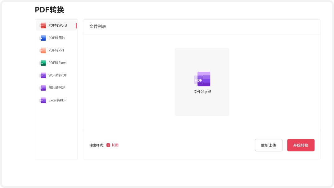 支持对PDF、Word、Excel、PPT、图片等文件格式互转